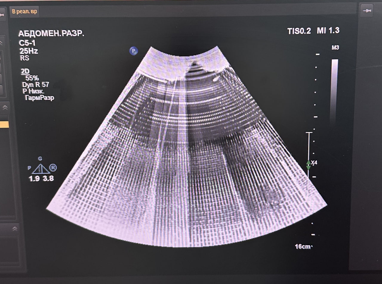 ⚠️ Неисправность: При сканировании на изображении наблюдалось множество белых полос по всему экрану, визуализация была сильно искажена.