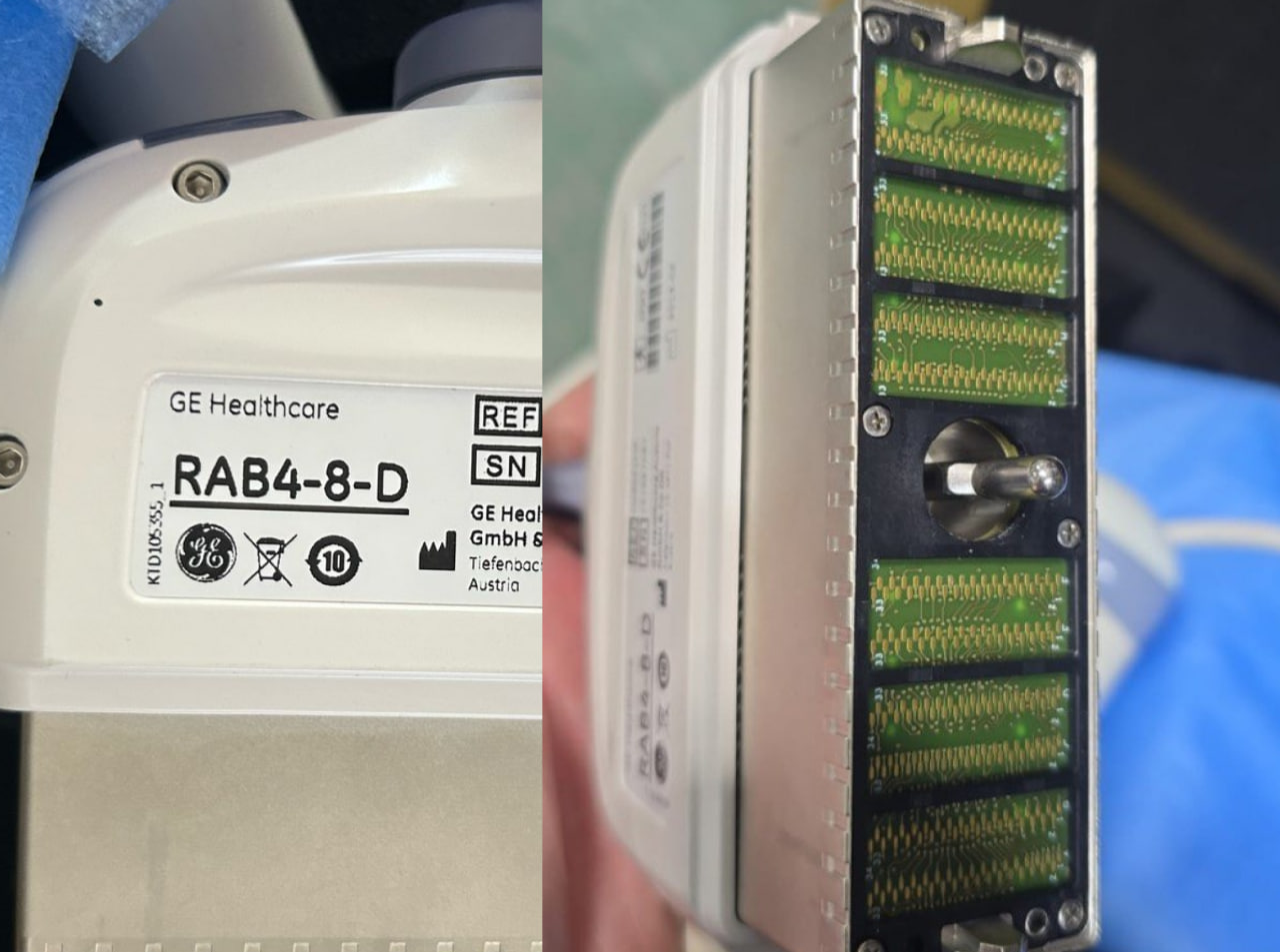 Неисправность: При работе на аппарате Voluson E8 датчик RAB4-8-D периодически терял связь — происходило прерывание сканирования.